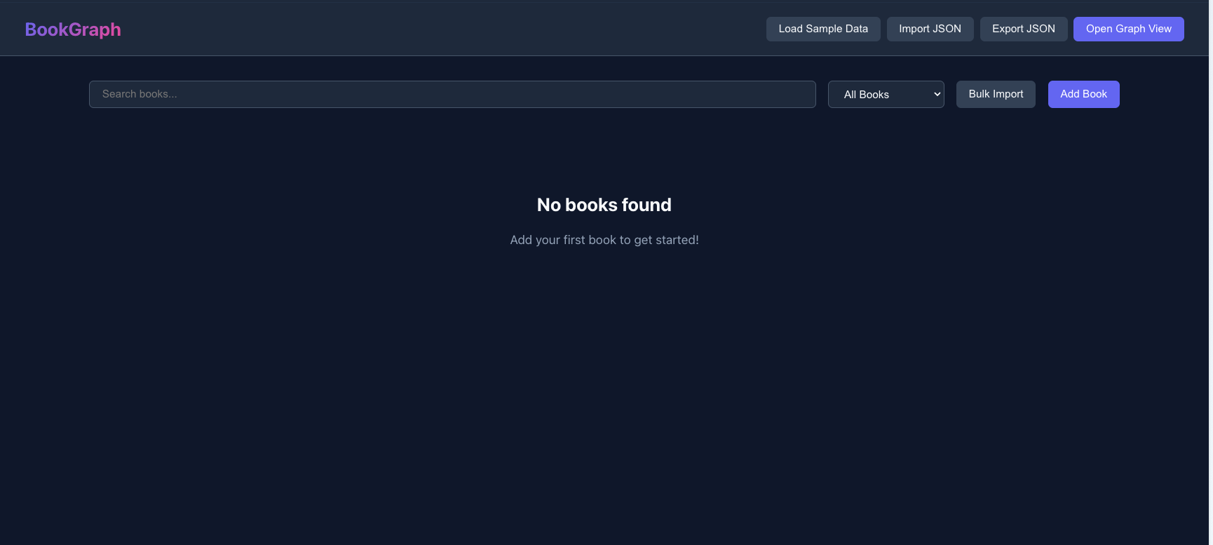 A browser-only app that turns your reading list into an interactive connection map—linking books by author, topics, themes, and tags. Add books, explore clusters, click nodes to see relationships, and spot patterns in what you read. Everything saves locally in your browser (no accounts, no backend), with import/export if you want to move it.